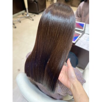トリートメントで髪の内部からしっかり補修することで、ここまでなめらかでツヤのある仕上がりに。